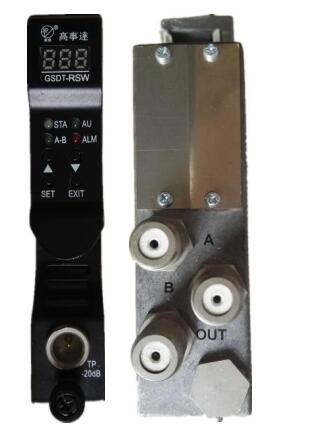 The GSDT-RSW-21 is a 3u rack mount, A/B Style RF switch. The Model automatically switches from the primary RF source to the secondary RF source whenever the primary source is interrupted. The user can set the threshold criteria to decide when a switch occurs. After a switch has occurred, when the primary source again exceeds the user-defined threshold, normal (un-switched) operation is resumed. An alarm informs the user when either the primary or secondary input levels fall below the preset limit.