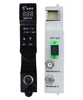 GSDT-FTX光發(fā)射機模塊是專門為現(xiàn)在和將來之HFC及FTTH應用而設(shè)計的1310nm直調(diào)光發(fā)射機。發(fā)射機使用高性能制冷型1310nm DFB光源,采用先進的預失真電路,使系統(tǒng)具有良好的CTB和CSO特性,其嵌入式單片機處理電路監(jiān)測和控制所有的參數(shù)狀態(tài)及遠程通信,可以通過訪問前面板之LED或EMS設(shè)備管理模塊來獲取這些參數(shù)信息。